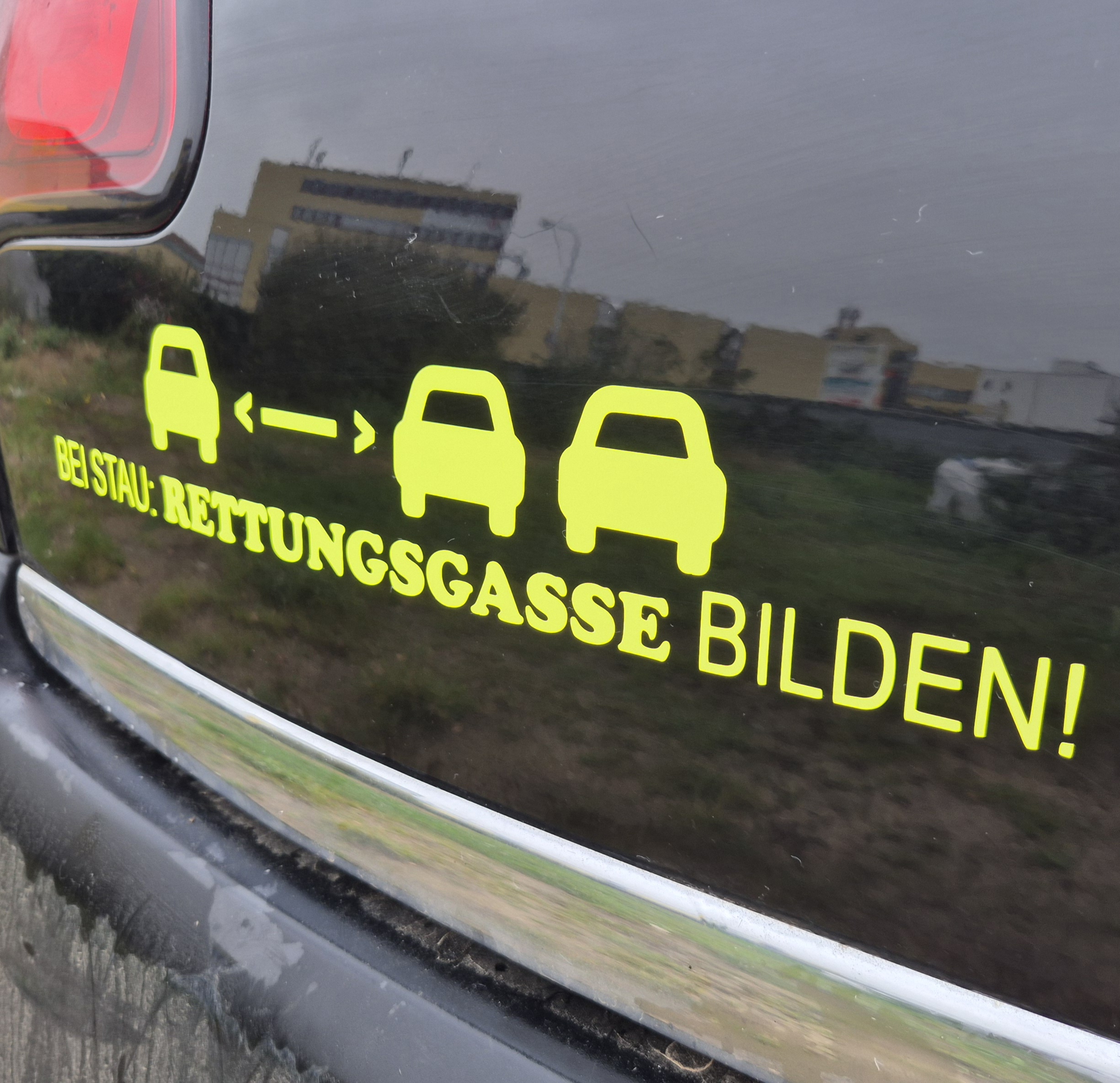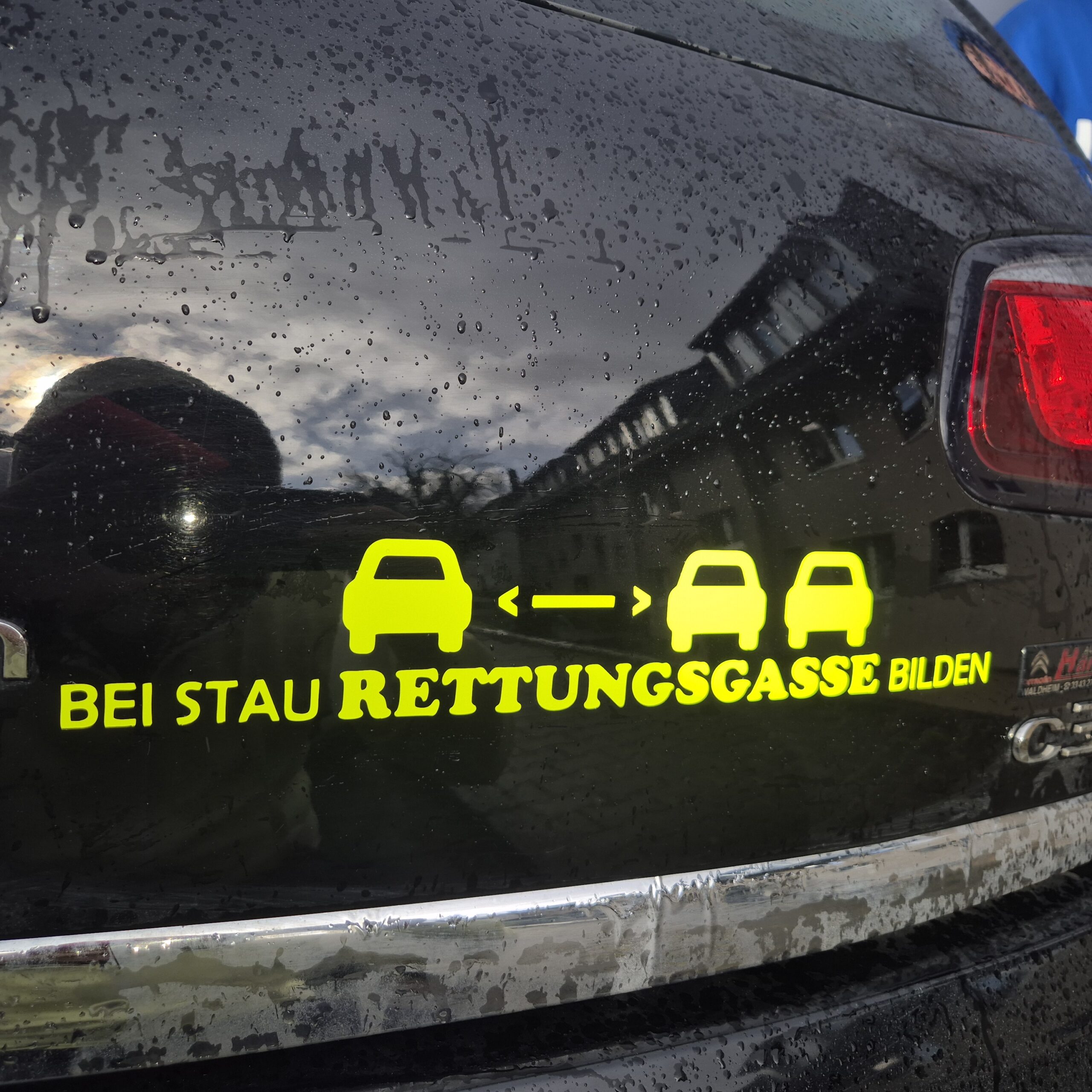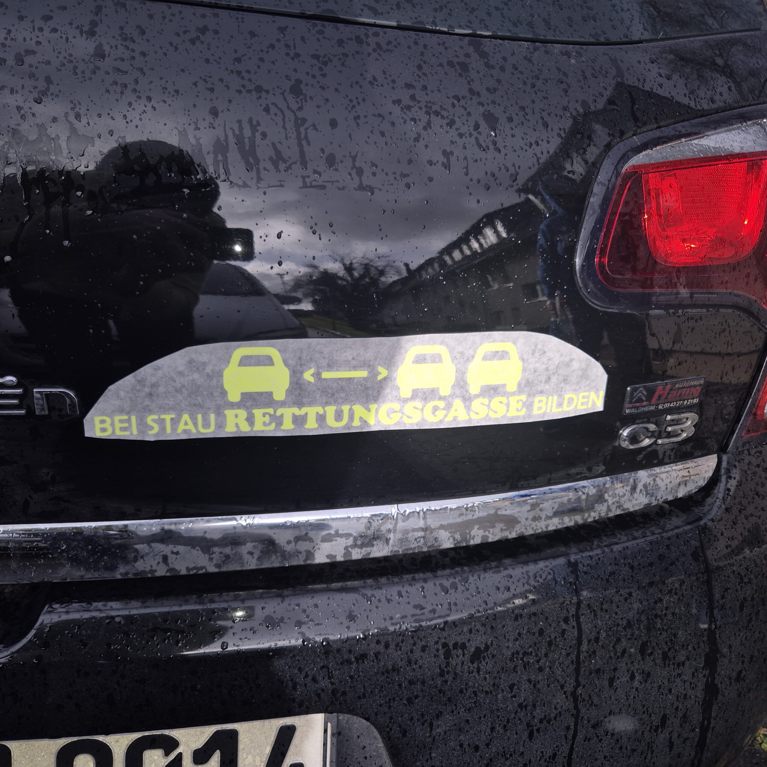 Der Aufkleber kann auf Wunsch auch gespiegelt werden, sodass man ihn auch von innen auf die Scheibe kleben kann.