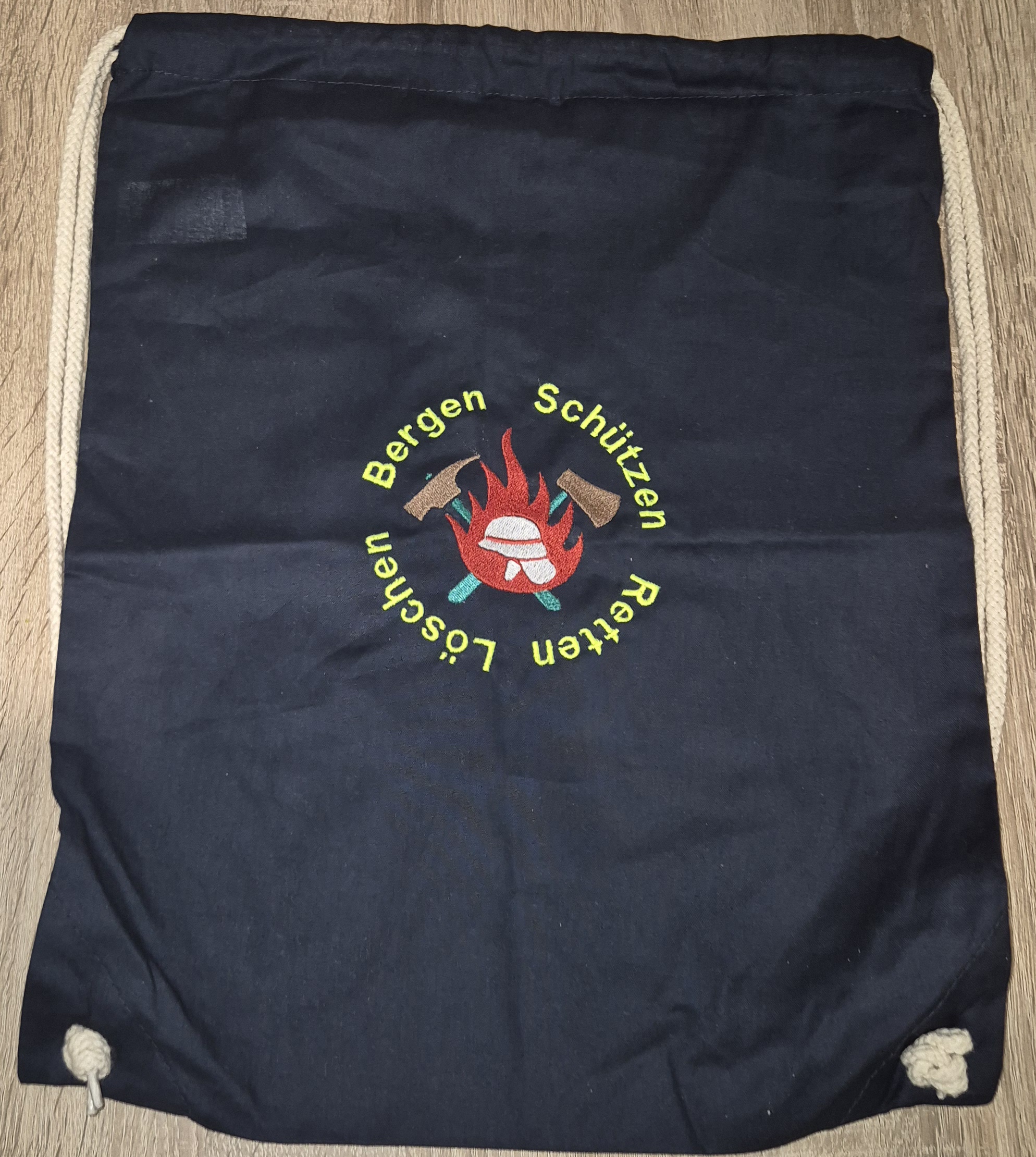 Sehr schöner Turnbeutel mit Logo „Feuerwehrhelm Retten Löschen Bergen Schützen“